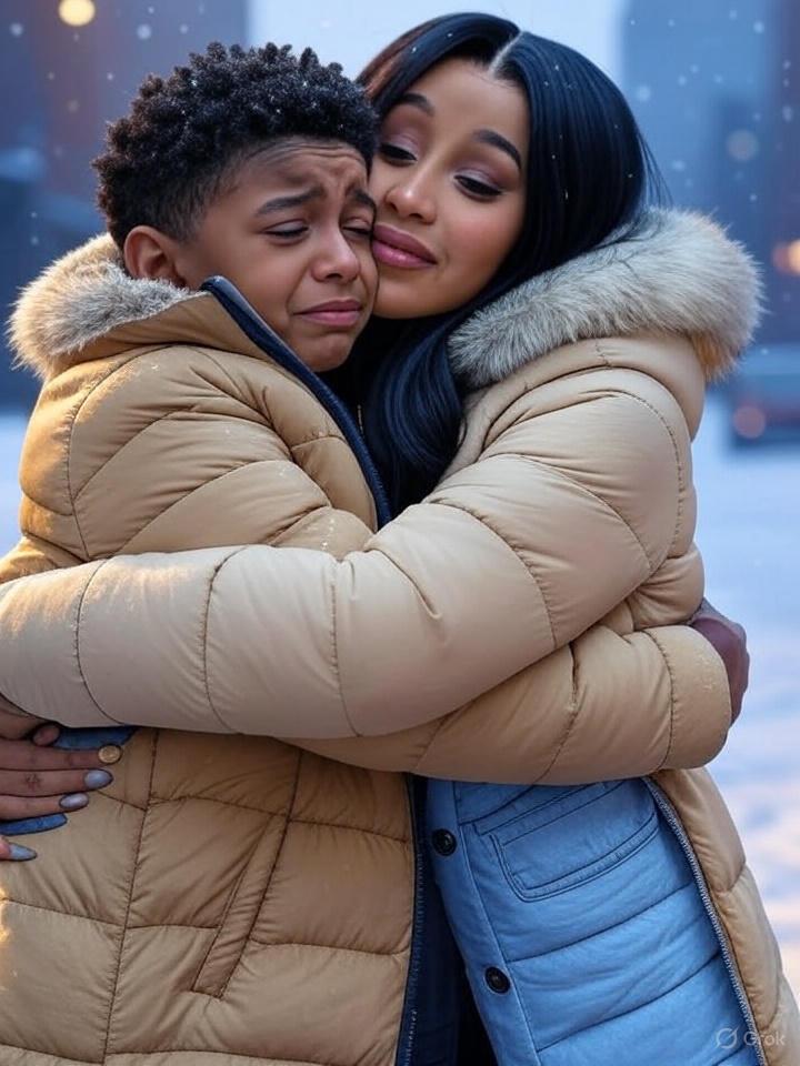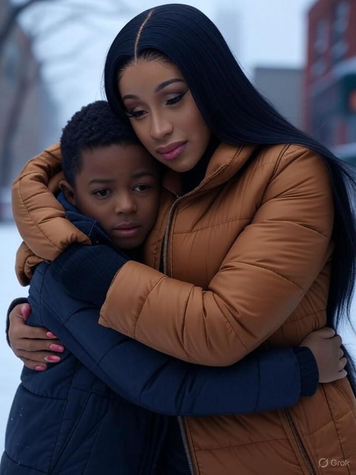 Ten years ago, long before the glittering stages, red carpets, and Grammy awards became synonymous with her name, Cardi B experienced a moment that would quietly change her life forever. It was a bitterly cold evening in the Bronx, and she was returning home from a community charity event when she noticed a small boy shivering on the sidewalk. Wrapped in nothing but a thin jacket, his teeth chattered in the freezing wind, and his tiny hands were red from exposure. Without hesitation, Cardi scooped him up and brought him into her home.