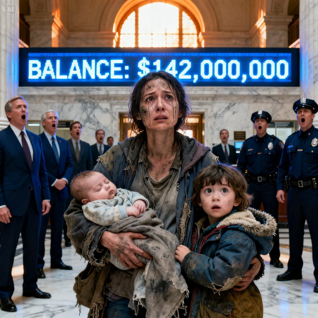 Her coat was too thin for the brutal January wind, the sleeves frayed at the cuffs. Her dark hair was tied into a loose knot that had given up halfway through the morning. In one arm she held a coughing toddler wrapped in a faded blanket, while the other hand gripped the small fingers of her nine-year-old daughter.