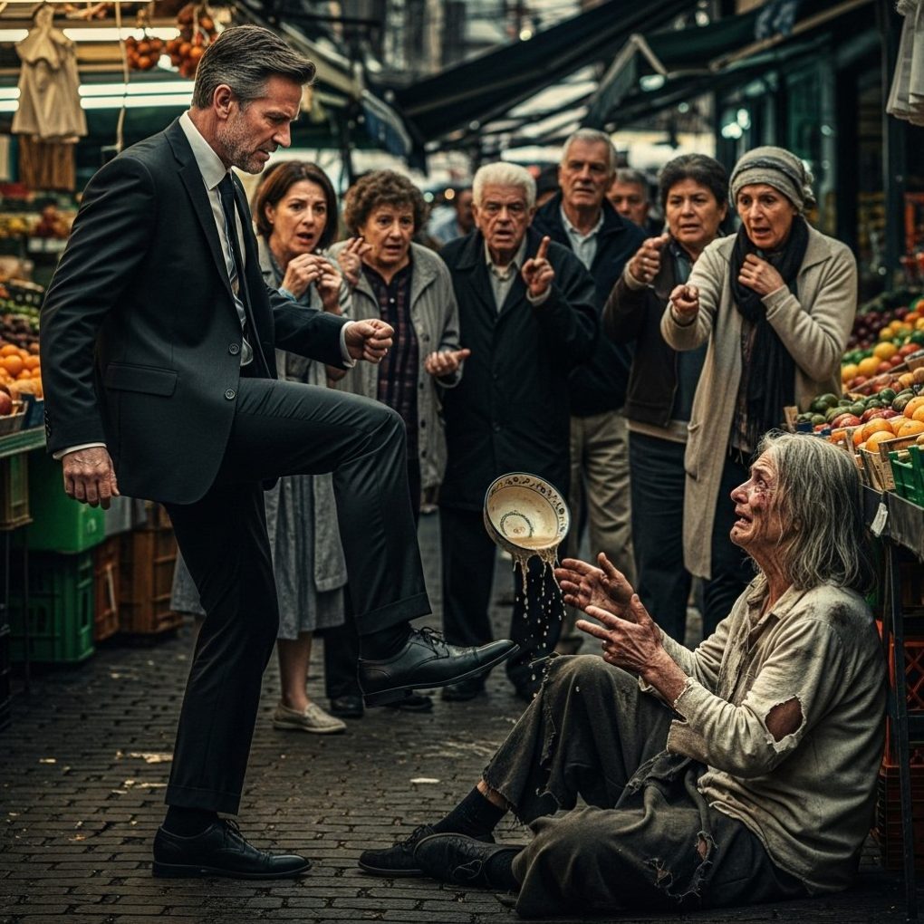 A Millionaire Kicked a Poor Beggar in the Market, Not Knowing She Was the Lost Mother He Had Been Searching…