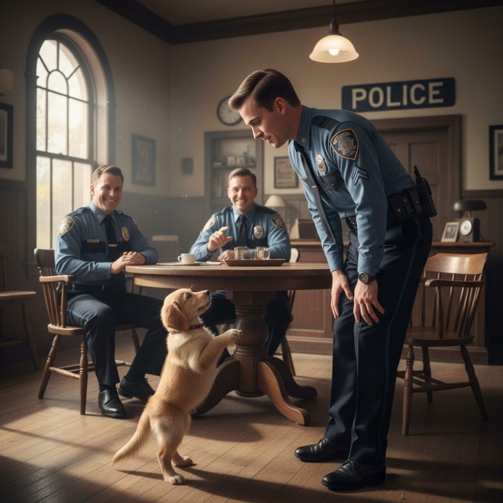 It was a cold morning in December when Officer Michael Brooks sat at his desk, sipping his lukewarm coffee, waiting for the next call to come through the radio. The police station in the small town of Lancaster, Ohio, had been unusually quiet that week. But then, out of nowhere, the door burst open. A small, trembling puppy, with a mangy coat and scared eyes, darted into the station, tail wagging frantically. She was obviously in distress, but there was a strange calmness about her—like she knew where she needed to go.