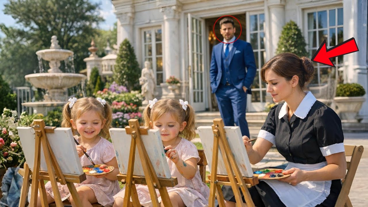 He swallowed hard and pushed the glass door open slowly. The sound of the latch made Marina look up immediately, and she froze, her paintbrush suspended in mid-air, the fear of losing her job etched on her face. The twins continued to concentrate on their work, oblivious to the tension that had settled in the garden. “Mr. Vinicius,” Marina whispered, starting to stand quickly and wiping her hands on her apron.