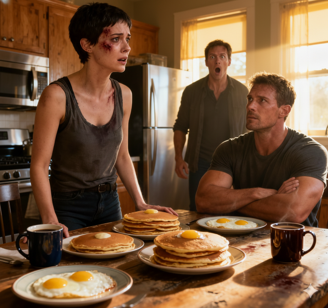 After My Husband Hit Me, I Went to Bed Without Saying a Word. The Next Morning, He Woke Up to the Smell of Pancakes and Saw the Table Filled with Delicious Food. He Said, “Good, You Finally Understand.” But When He Saw the Person Sitting at the Table, His Expression Changed Instantly…