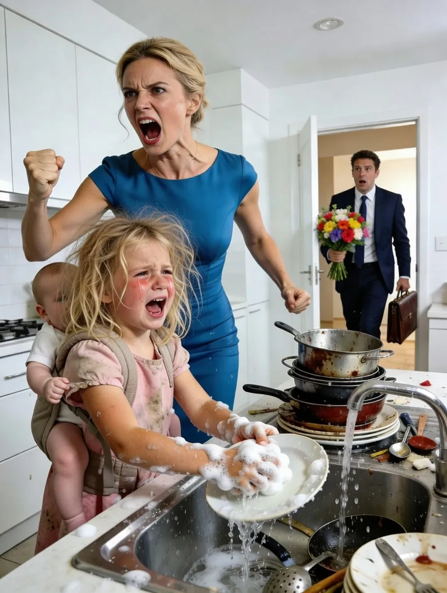 Curled up on damp towels. Exhausted. Their small hands were red and swollen, covered in dried soap foam. Surrounding them was a towering pile of pots and pans — more than fifty. Some blackened inside, as if someone had deliberately burned them to make scrubbing impossible.