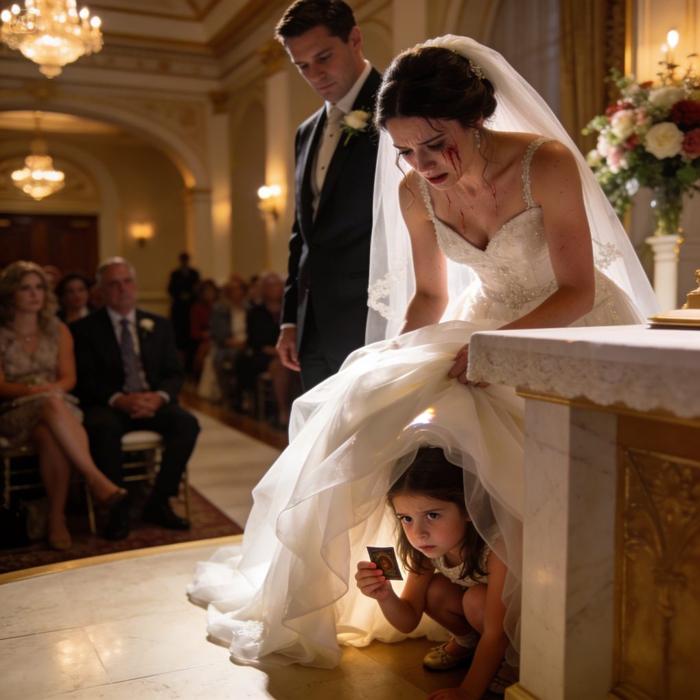 At my wedding to my new husband, my five-year-old daughter crawled under my dress. Her little face peeked out from beneath the skirt, and she whispered, “Mom, look…” In her hand was something that made me freeze. I couldn’t speak. My whole body began to tremble. And then, I called the police.