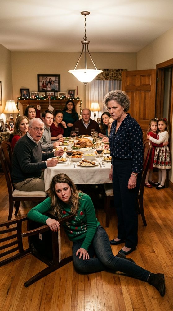 By the time the year-end dinner arrived, I already knew better than to expect peace. The dining room was crowded with relatives, cousins, aunts, uncles, children running in and out, the table full of glazed ham, potatoes, candles, crystal glasses, and the heavy smell of roasted meat and old resentment. My daughters, Lily and Sophie, were in the living room coloring. I was seated halfway down the table, trying to get through one meal without becoming the entertainment.