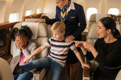 Child keeps kicking black girl’s seat on plane — Flight attendant reminds but boy’s mother reacts: “My child kicks this…
