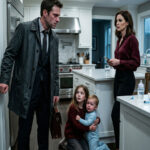 I stood frozen in the dark hallway, one hand gripping the flashlight, the other pressed against Noah’s shoulder to keep him behind me. The man outside wore an expensive charcoal coat that didn’t belong anywhere near my collapsing porch. He knocked twice, calm and patient, as if he had every reason in the world to expect me to answer.