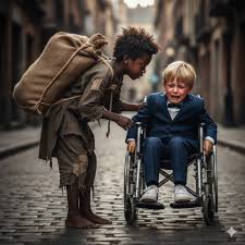 And a fallen wheelchair, forgotten under the golden sky.
