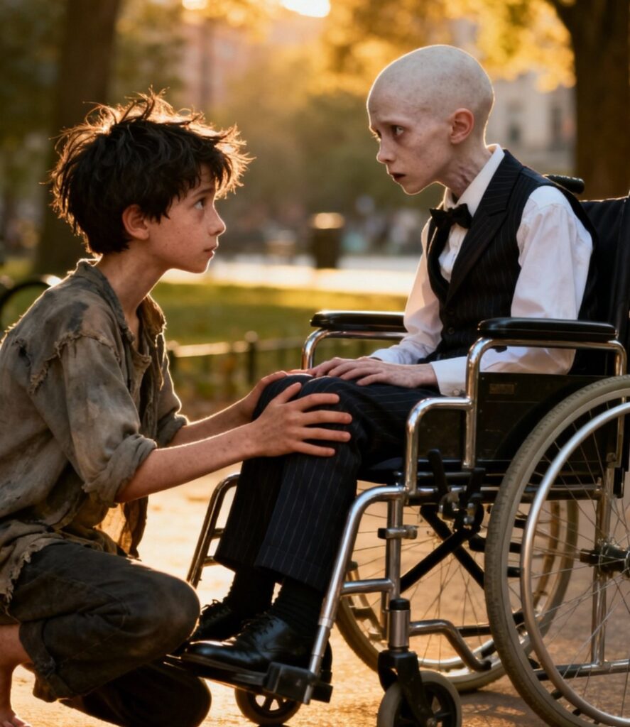 Elias didn’t open his eyes. His forehead was beaded with sweat. His small hands trembled on Caleb’s knees.