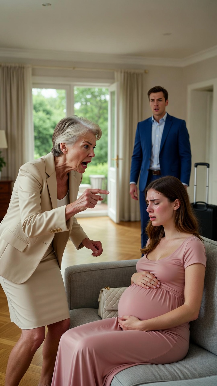 Olivia was curled on the velvet couch, arms wrapped protectively around her swollen belly. Her face was soaked with tears.