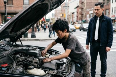 Adrian Cole had never been late for anything in his life. He stood beside his broken-down luxury sedan on a…