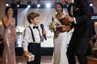 My ex-husband cheated on me, left me and our son, and still invited us to his wedding. During his speech, he laughed and said, “Leaving that trash was the best decision of my life!” The crowd burst into laughter. Then my son calmly took the microphone. “I brought a special gift for you, Dad,” he said, handing him a box. When my ex opened it, his scream silenced the entire room.