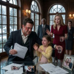Mateo was left completely alone at his table for two, soaked, humiliated, surrounded by full glasses and the judgmental stares of strangers. He tried to get up from his chair to approach Valeria’s table, perhaps intending to kneel, but Alejandro, with a swift and authoritative movement, pulled a thick, elegant black leather envelope from his inner jacket. He slid it through the small opening in the glass panel, letting it fall with a thud right onto Mateo’s porcelain plate.