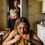 She ate fast, too fast, as if she hadn’t eaten in days. Between bites, she wiped tears from her face. Every few seconds, she glanced nervously toward the door, as if afraid someone would discover her.