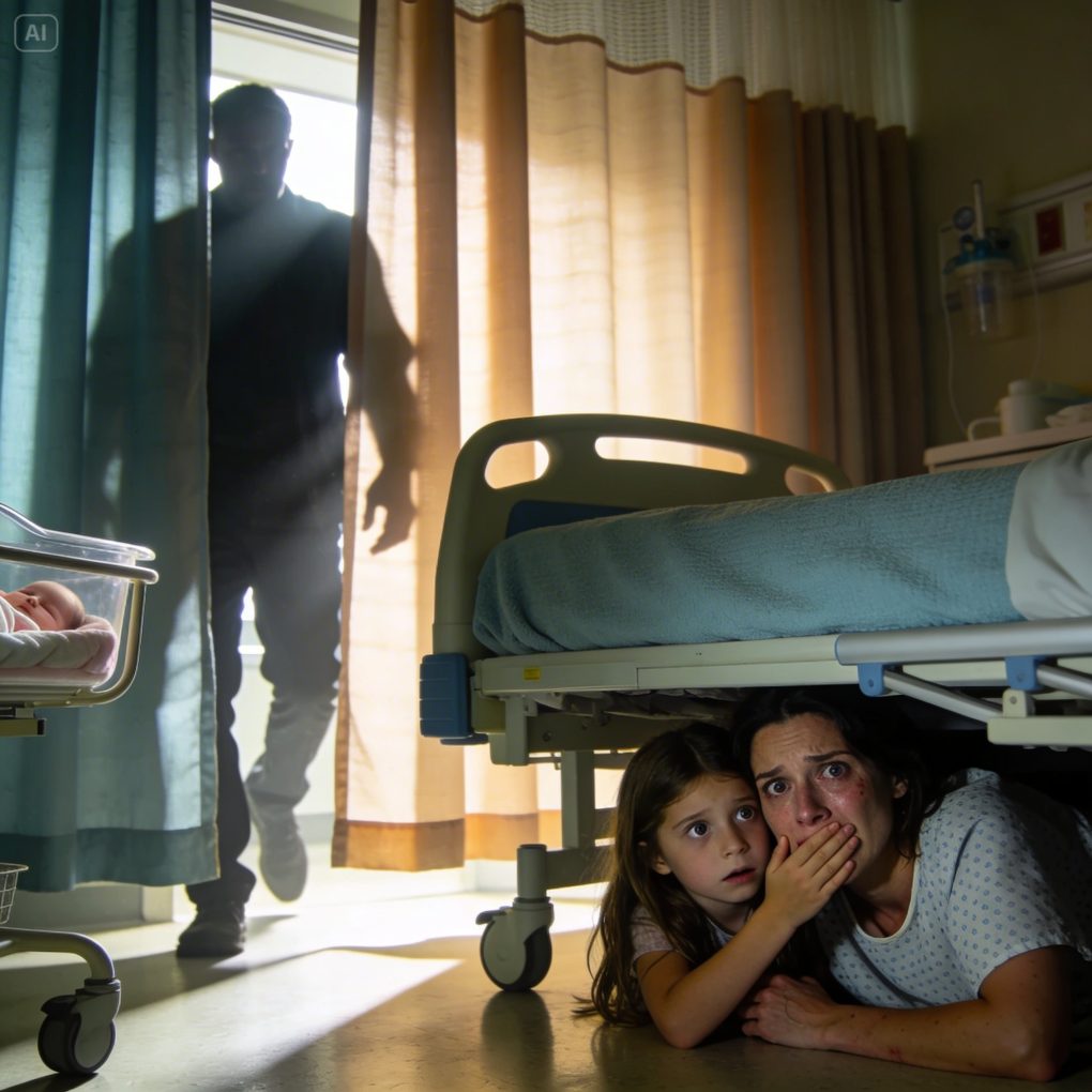 I had just given birth when my 8-year-old daughter came to visit me. She quietly closed the curtain and whispered, “Mom, get under the bed. Now.” We crawled underneath together, holding our breath. Then footsteps approached, and she gently covered my mouth.