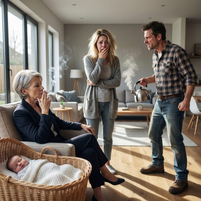 I had rehearsed the sentence three times before I said it, because with my mother-in-law, Diane, even the smallest request could turn into a war. My six-month-old son, Noah, was finally asleep in the guest room after two miserable nights of teething, and the whole house had gone quiet except for the low hum of the air conditioner. Diane stood by the cracked window with a cigarette between her fingers, the smoke curling back into the room anyway. I kept my voice calm.