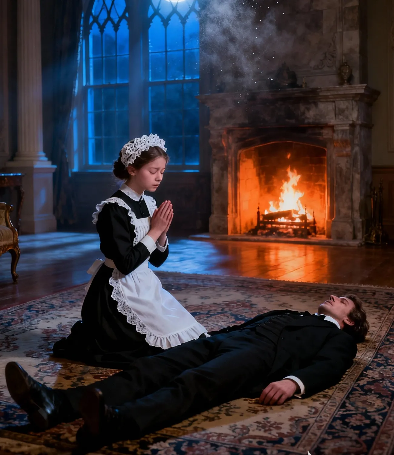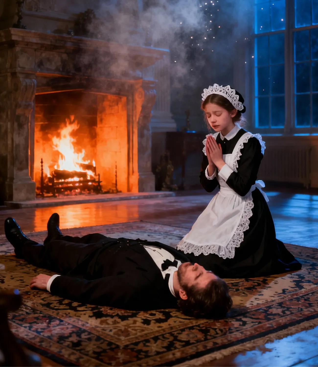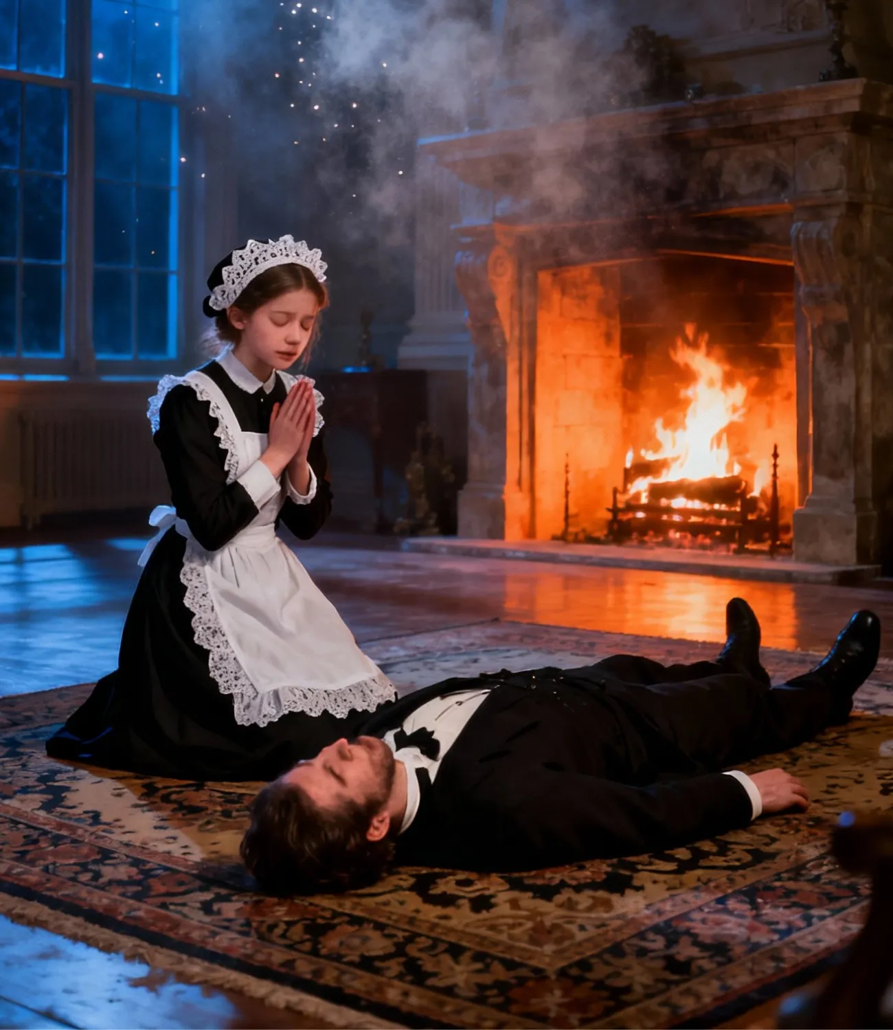 She touched his chest lightly, then pressed trembling fingers against his neck, searching for a pulse. Her eyes filled with tears so quickly it seemed as if her body had been waiting for permission to break.