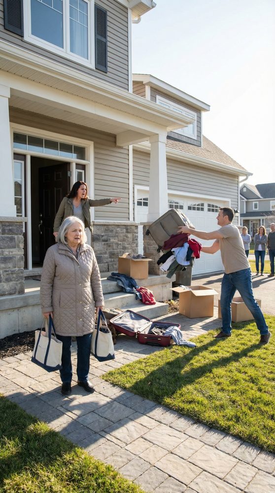 A silk blouse I had folded carefully the night before was half hanging out of one suitcase. My toiletry bag had burst open on the porch, and my hairbrush had rolled down the front steps into the slush. The January wind cut through my coat, but the cold outside felt gentler than what had just happened inside that house.