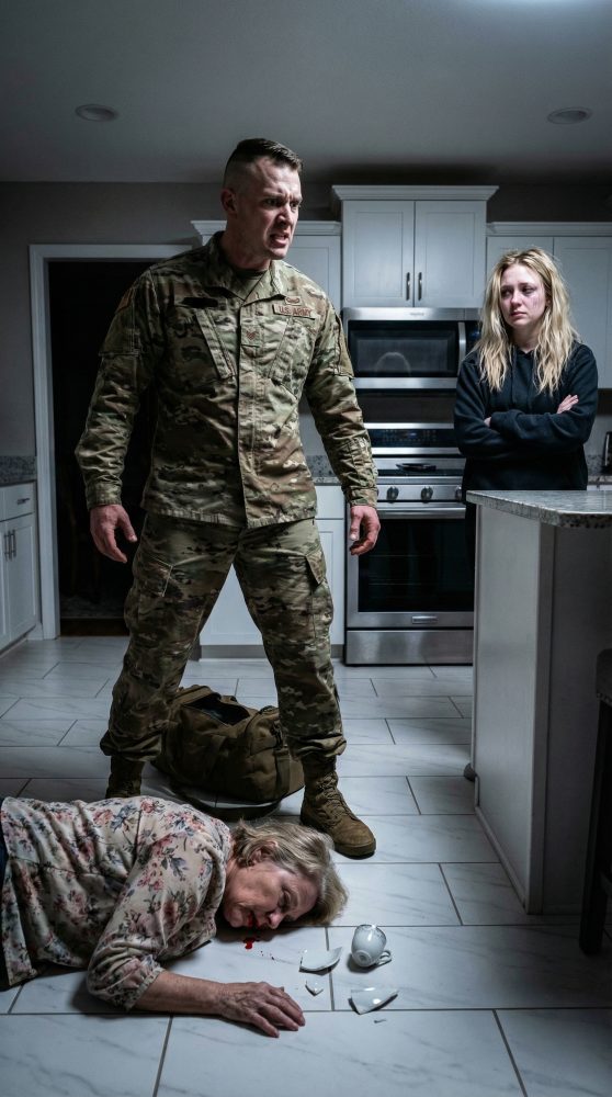That evening, I heard a crash from the kitchen. I ran in and stopped cold. Blood was smeared across the tile. Two broken teeth lay near the cabinet baseboard. My mother was on the floor, trembling, one hand over her mouth. Rebecca stood above her, breathing hard.