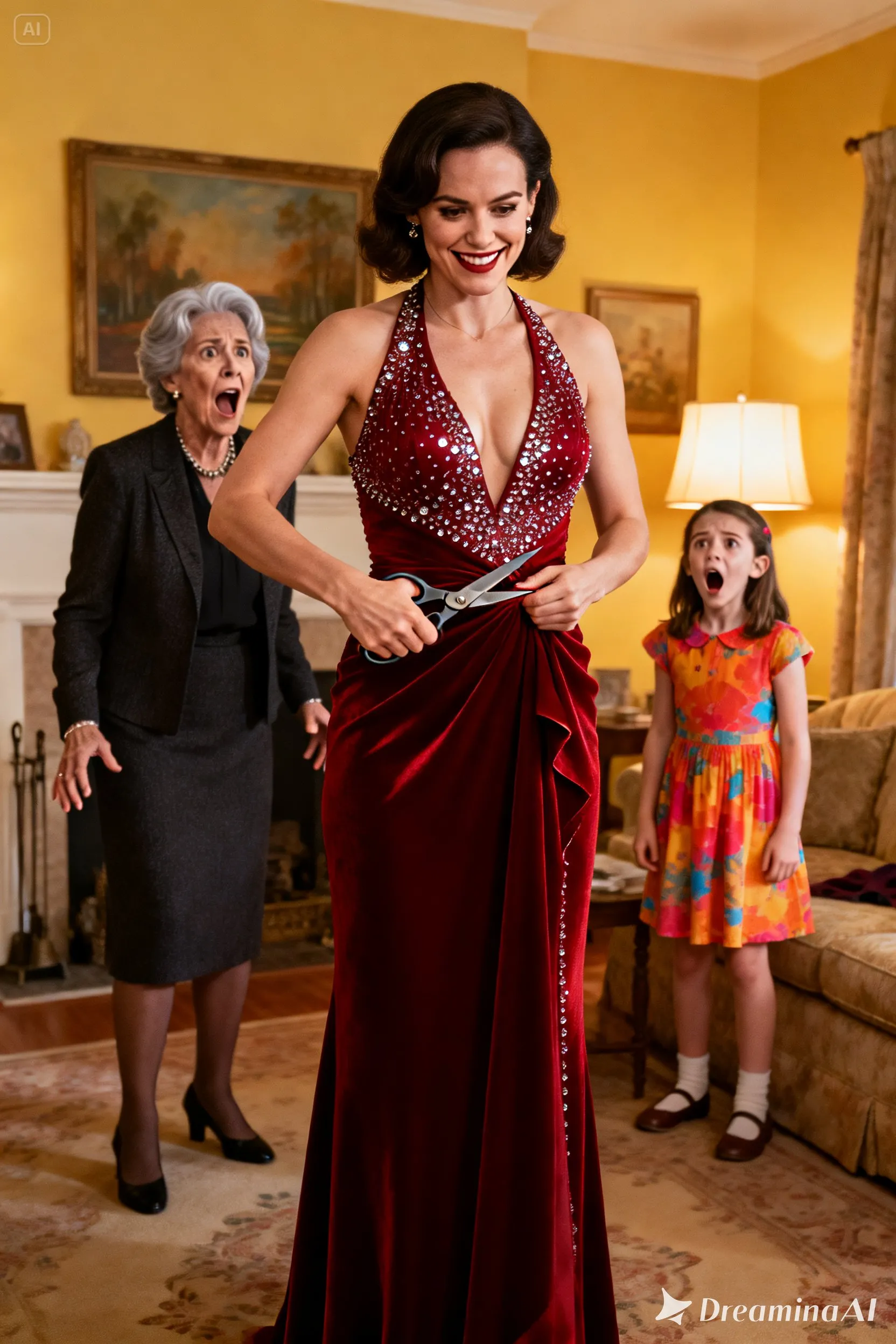 Before I could stop her, she grabbed the dress and held it up like she was inspecting it for flaws.