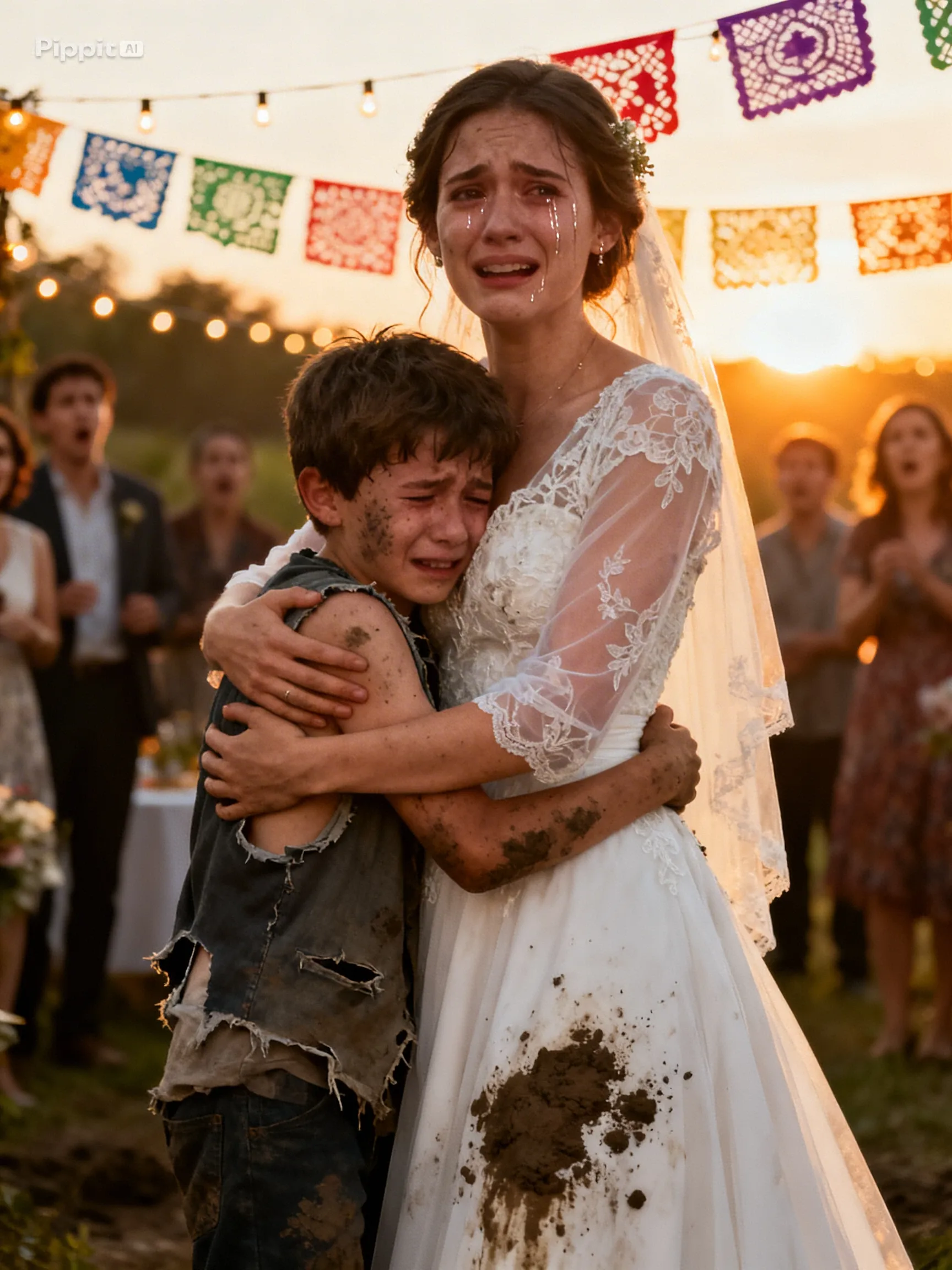 A collective sob swept through the courtyard as the bride embraced Kai fully, holding him as though trying to recover every lost year in a single breath.