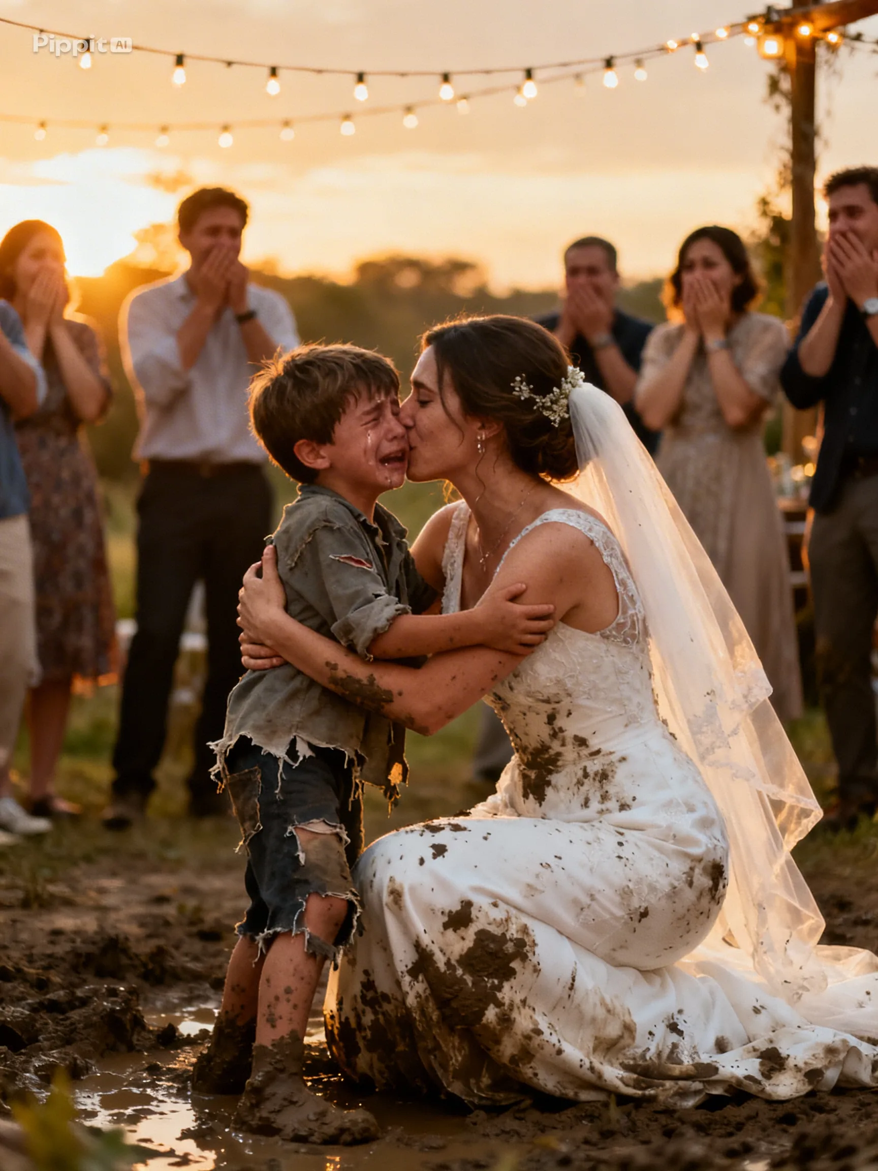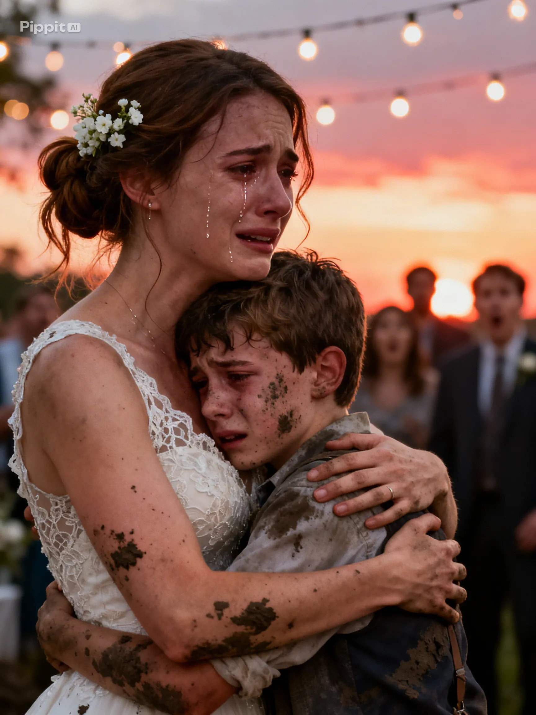 Instead of anger or humiliation, his eyes filled with compassion as he looked between the weeping bride and the trembling child.