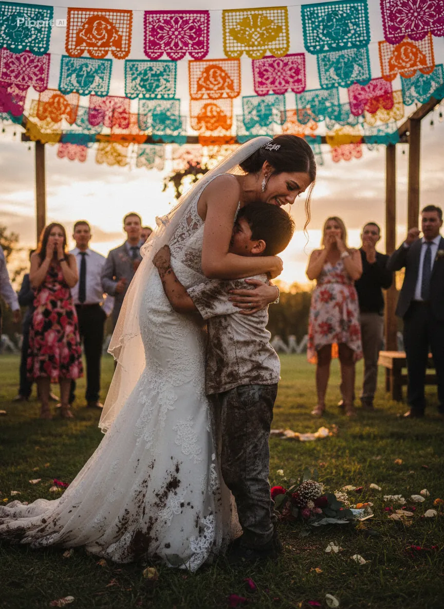 The bride’s eyes widened as she looked down at the boy standing before her, taking in his thin face, his dark hair, and the bracelet encircling his wrist.