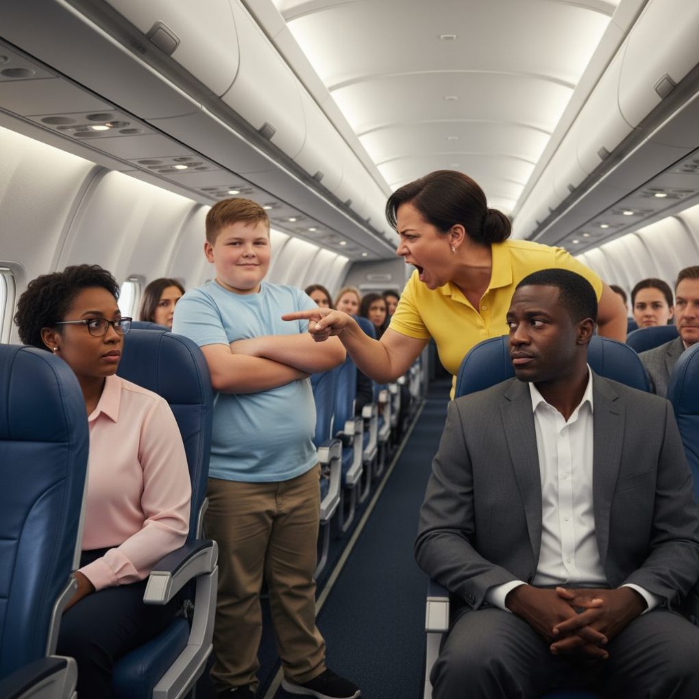 But Karen wasn’t done. “You really should. You know, it’s not just about size—it’s about what’s right. Black people like you need to know your place. We are wealthier, and we deserve comfort. You’re just sitting here with your seat while my son struggles. Maybe you should think about giving up your seat for someone who truly needs it.”