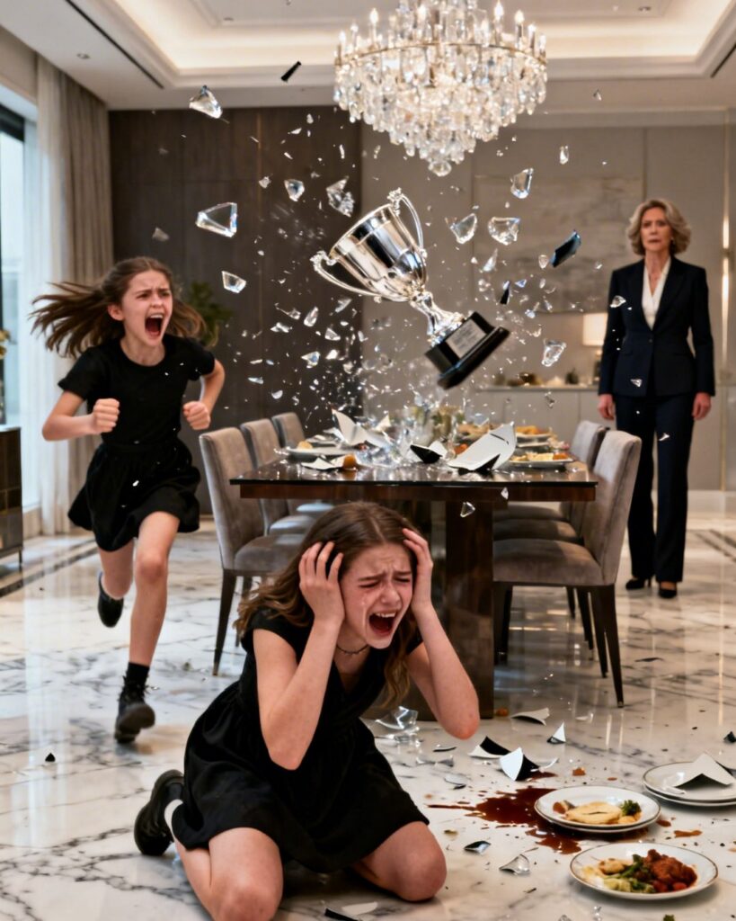 I remember standing there in shock, one hand pressed against the counter, my heart hammering, while the gold-painted trophy rolled across the tile. My mother rushed in, saw Chloe on the floor crying, saw me frozen, and went straight to comforting her. “Mia,” she said quietly, “you have to be careful. You know this upsets her.”