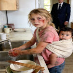 “Why is my daughter downstairs doing chores with a baby strapped to her back?” he demanded.