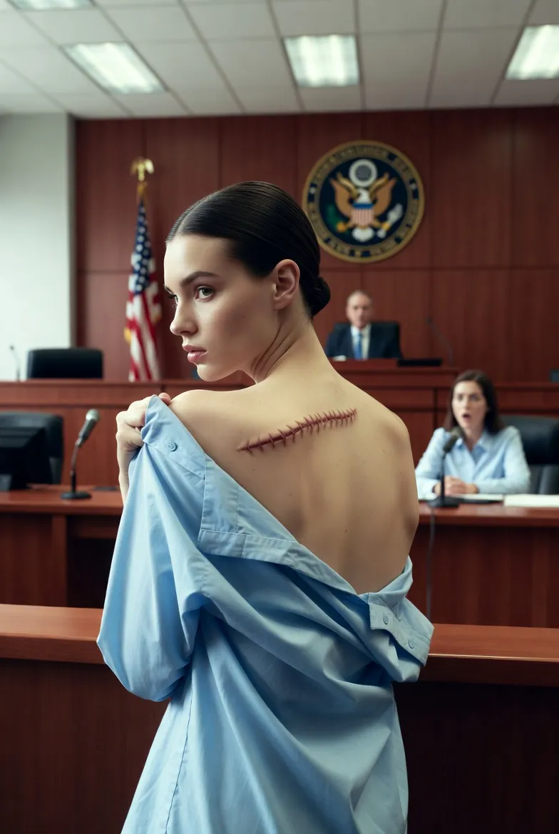 I lifted the cloth just enough to reveal the pale, raised scar carved into my shoulder, and the courtroom fell into complete silence.