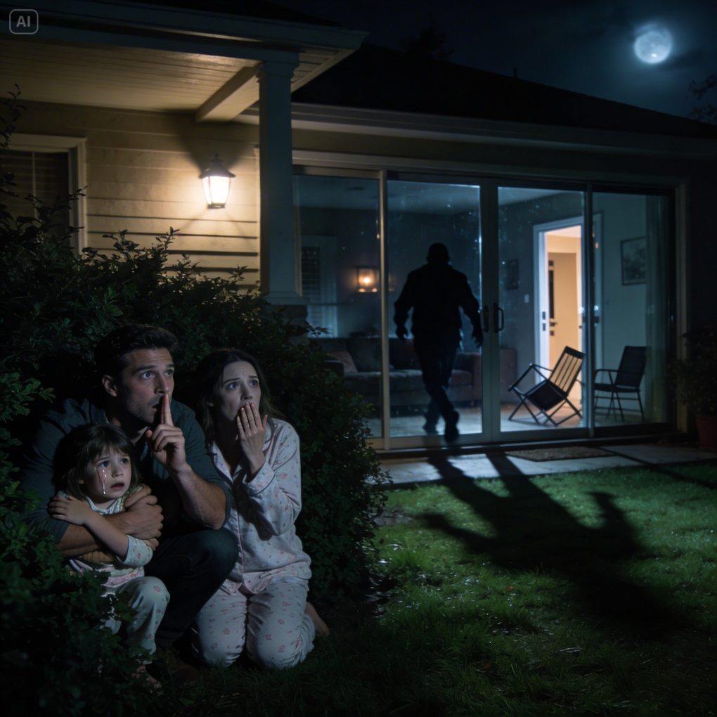 My husband jolted us awake in the middle of the night. “Get up! To the backyard, now!” “What happened?” Our five-year-old grabbed onto me, shaking. “Mommy, I’m scared…” “No time to explain!” he shouted, scooping up our daughter. We rushed outside in our pajamas and hid in the bushes. Then I looked toward the house, saw who had appeared there, and froze in horror…