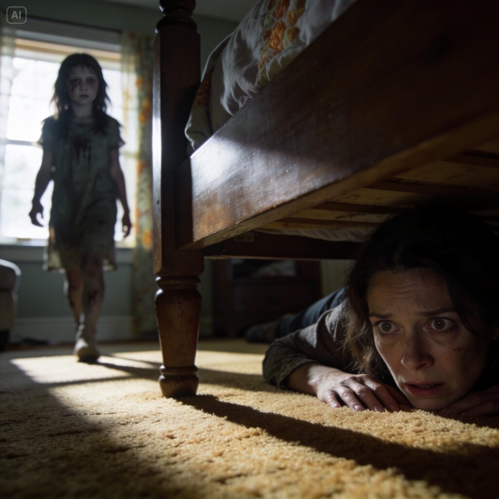 I crouched down and, feeling ridiculous, slid under her bed. Dust tickled my nose. I held my breath, listening.