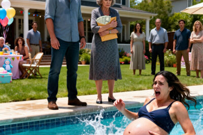 I’ll never forget my baby shower. Eight months pregnant, I watched as my husband handed my entire childbirth fund—$23,000—to his mother in front of everyone. When I tried to stop him, he yelled at me; his family sided with him, and in the ensuing chaos, I lost my balance and fell into the pool. As I struggled to stay afloat, I looked down at my belly… and everything went cold.