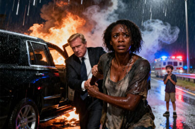 A poor black girl saves a billionaire and his child from a car accident in the rain—but something he says…