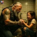 Old biker found little girl hiding in the restaurant’s bathroom at midnight, bruised and terrified, begging him not to tell her stepfather where she was.