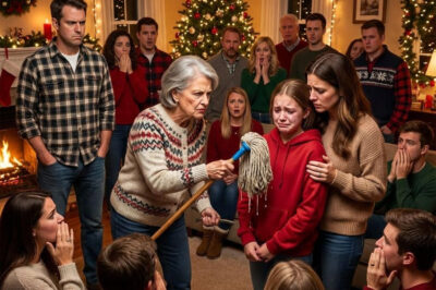 On Christmas Eve, my mother handed my daughter a filthy mop in front of twenty guests and my wife. “You eat here for free, so start cleaning,” she said with a triumphant smile. My sister’s daughter chimed in, “That’s exactly what you deserve, Sophia.” That night, we packed our bags and left. But what I did the very next day turned the entire family upside down…