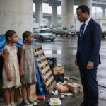 At the doorway—barely held back by security—stood a boy. No older than ten. His clothes were torn and dirty, his face smudged with soot and dust. In his hands, he nervously twisted a worn-out cap.