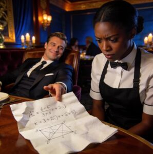 The words landed harder than the shove that followed. Kesha Williams barely had time to react before her wrist was struck aside, the glass tipping, water spilling across the pristine white napkin covered in tight, hurried equations. Ink bled instantly, numbers dissolving into meaningless stains.