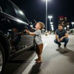 I found a barefoot toddler sobbing beside a black car — but when security checked the cameras, the chilling truth emerged: the child had never entered the premises at all